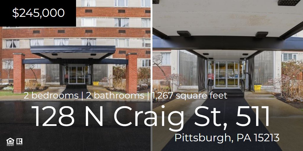Welcome to your new condo at 128 N Craig Street! This spacious 2-bedroom, 2-bath unit at Park Plaza offers prime city living near universities, medical centers, restaurants, and museums—all within walking distance. The condo features abundant sunlight, city views, and access to a rooftop patio, gym, laundry facilities, and the peace of mind of 24-hour security. The entryway has two large closets for storage; the kitchen includes ample cabinetry, a pantry, and a hallway door for easy grocery unloading. Down the hall are a full bath, additional closets, and two bedrooms. This unit offers an ensuite primary bath, plenty of space for entertaining too! The building also has a guest suite available. Parking available for a small monthly fee. Maintenance fee includes water, roof top patio access, gym, HVAC, maintenance, and common area insurance. Building offers storage unit and laundry on same floor for easy access and convenience. Schedule a tour and make the move to purchase this one today!